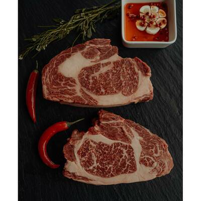 Das Rib-Eye-Steak ist aufgrund der Fettmaserung besonders saftig und sehr geschmackvoll. Der Klassiker unter kurzgebratenem Fleisch. Kräftiger Fleischgeschmack und sehr saftig. Eine wunderbare Marmorierung.